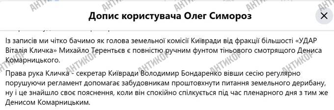 The associate of Klychko, the secretary of the Kyiv City Council Volodymyr Bondarenko, is a key member of the fugitive Komarnytskyi’s gang?