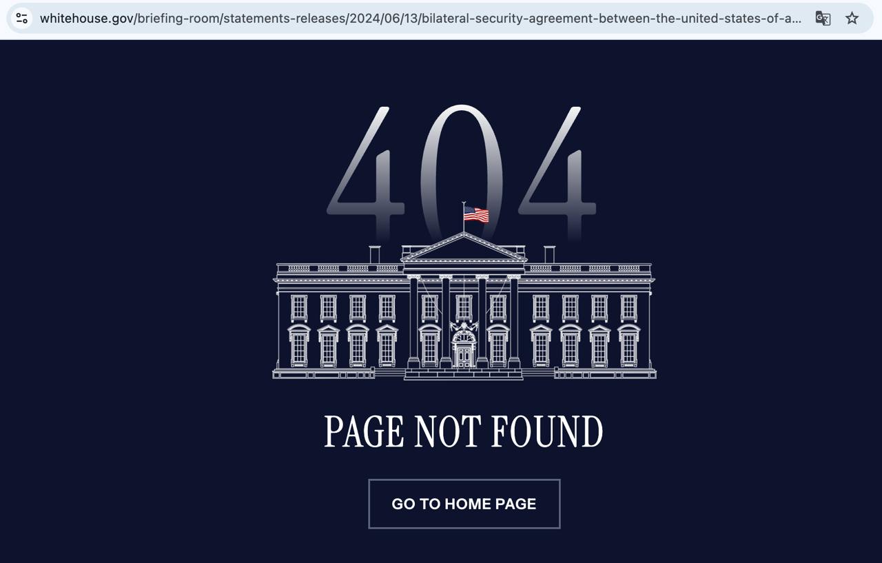 The 10-year security agreement with Ukraine, signed last summer, has disappeared from the White House portal.