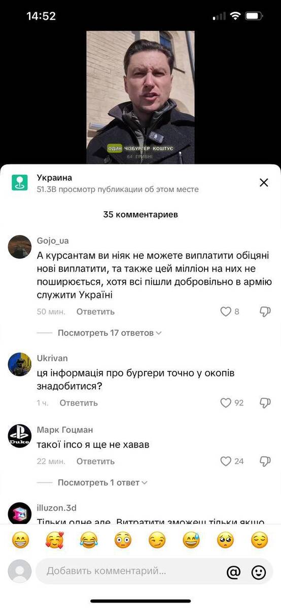 The official TikTok of the department published a video about how with a payment of one million hryvnias in "sign-on bonuses" under the "youth contract" for individuals aged 18 to 24, one can buy 15,000 cheeseburgers.
