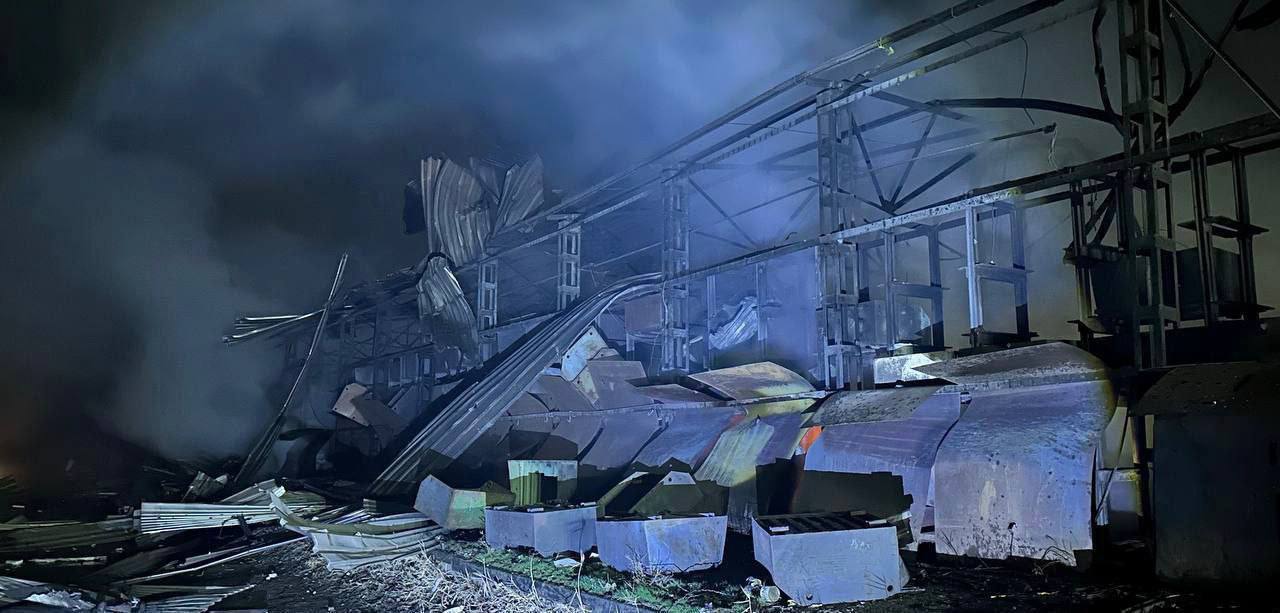 The occupiers claim that the drone debris fell in the industrial zone, on the warehouse territory, resulting in a fire.