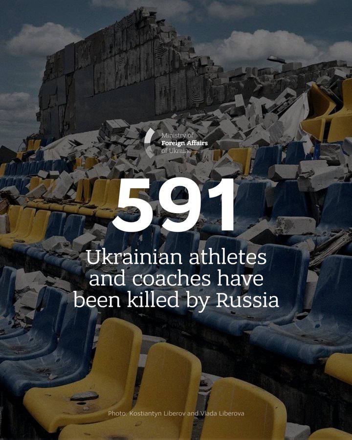“As of March 2025, 591 Ukrainian athletes and coaches have been killed by Russia, 22 are held captive, and 11 are missing. 725 sports facilities have been damaged or destroyed by Russian attacks, including 17 Olympic, Paralympic, and Deaflympic training bases,” the statement reads.