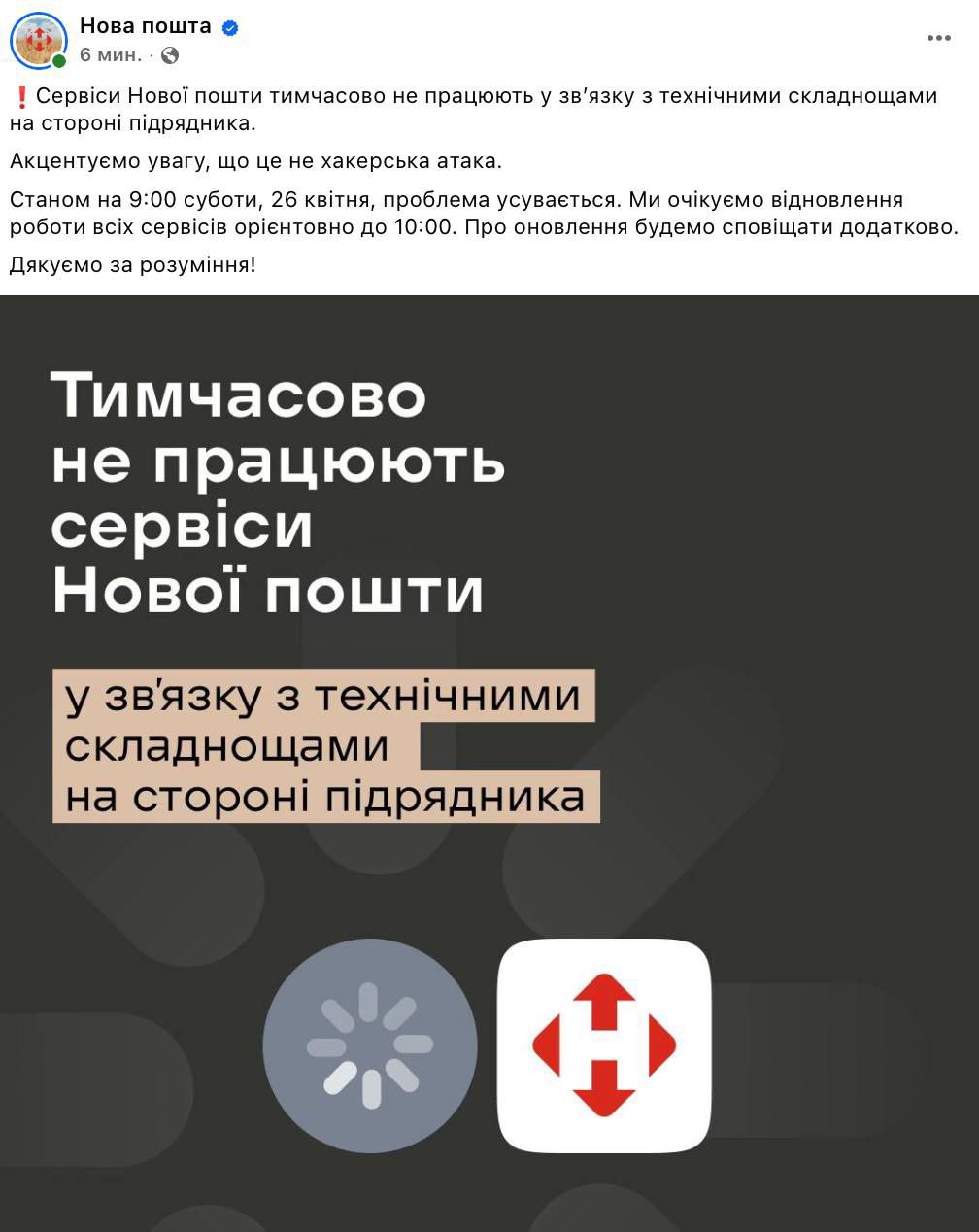"Nova Poshta" confirmed a disruption in the operation of its services due to issues with a contractor.