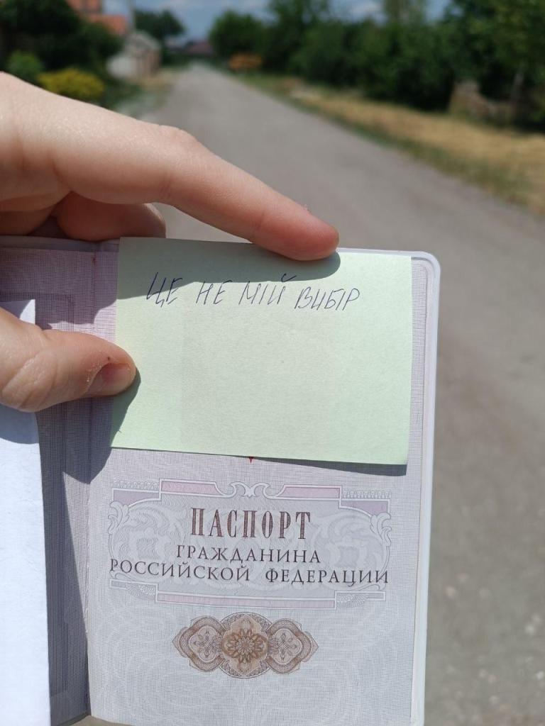 "The Russian passport is a scar from the occupation. It has never been our choice. We are waiting for the day when we can throw away the forcibly issued Russian passports into the trash of history, and we are trying to bring this day closer, as much as we can," the activists declared.