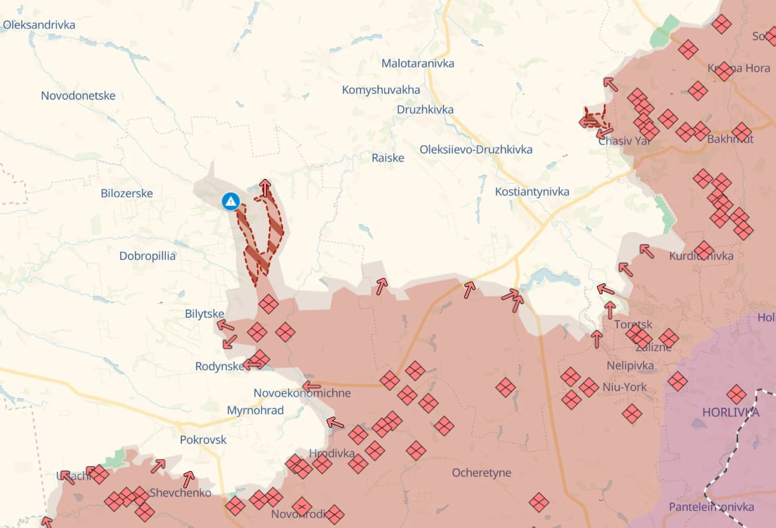 Thus, the offensive, which began a few days ago, continues north of Pokrovsk, in the area between Dobropillia and Kostyantynivka.