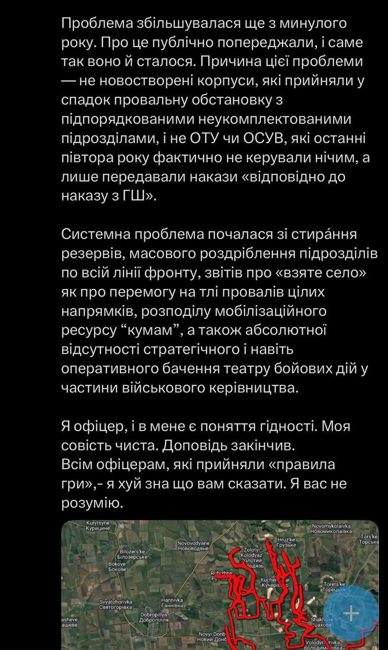 According to him, the frontline is practically non-existent, Pokrovsk and Myrnohrad are almost encircled, Kostyantynivka is semi-encircled, and the enemy is advancing towards Kramatorsk and Druzhkivka.