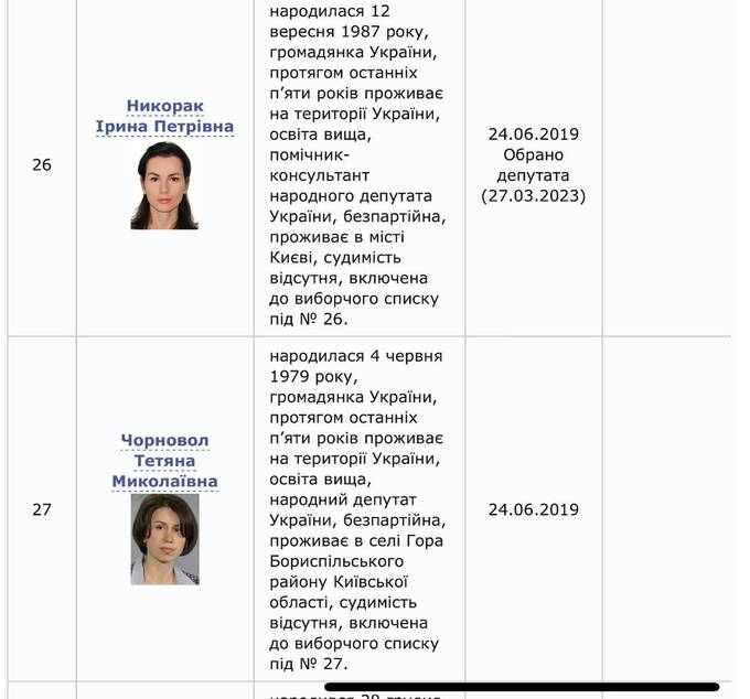 The last person to enter the Rada from the ES list in April 2023 was Iryna Nykorak. The next in line is Chornovol.