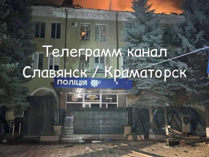 In Kramatorsk, a drone attacked the city police department building at night.