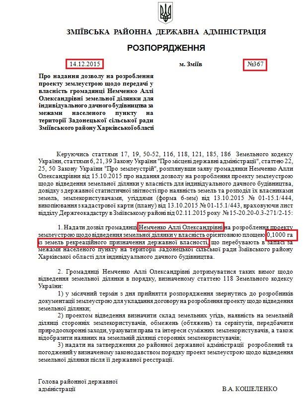 The relevant orders were published on the Zmiiv district state administration’s website. In December 2015, Vitaliy Koshelenko allowed some citizens to develop land management projects for the transfer of recreational lands for individual cottage construction.