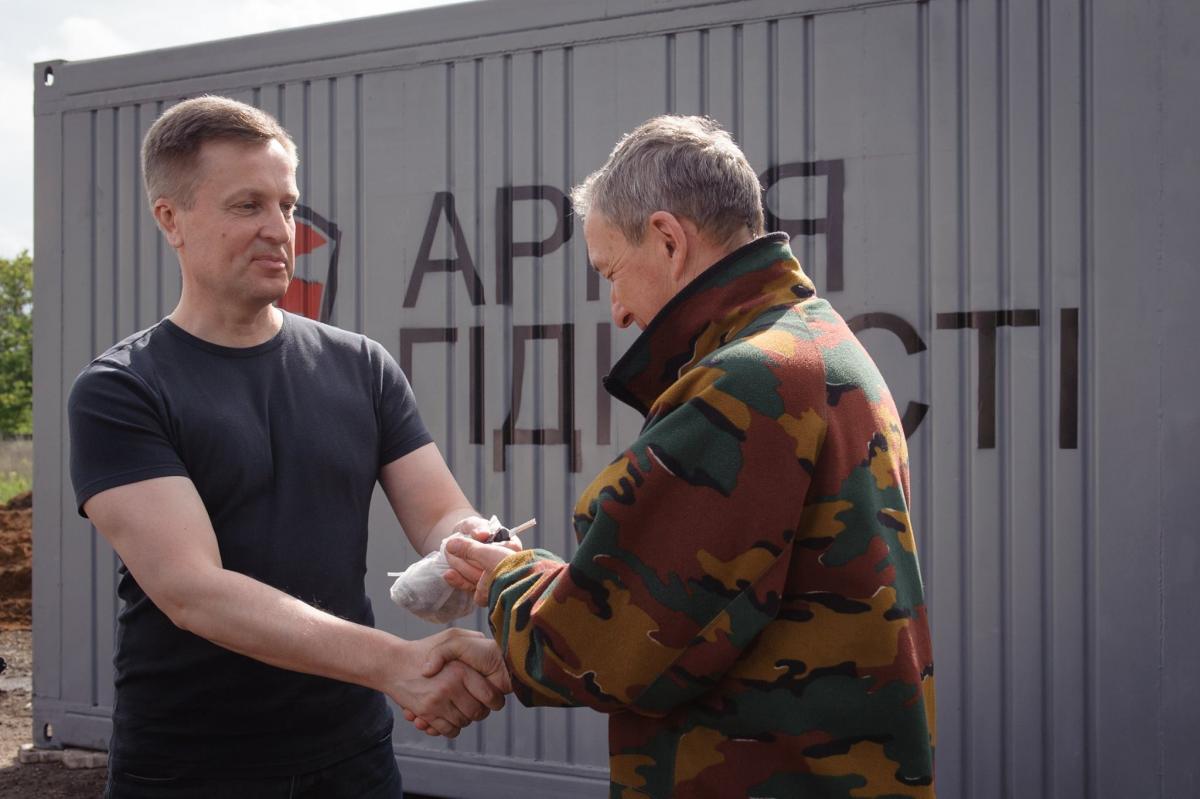 За словами Валентина Наливайченка, це вже п’ятий за рахунком модуль, який очолювана ним громадська організація передає як гуманітарну допомогу бійцям. Цього разу мова йде про великий санітарний модуль, а також медикаменти, засоби особистої гігієни.