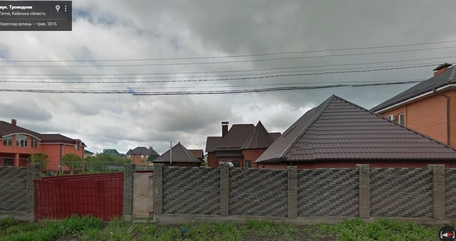 Имение жены Сенюка указано в его декларации за 2015 год. Расположено оно в селе Гатное под Киевом. Судя по фото, построено оно был недавно, а на момент съемки на территории не были установлены ворота и калитка. Также этот дом был указан в предыдущей декларации Сенюка – за 2014 год.