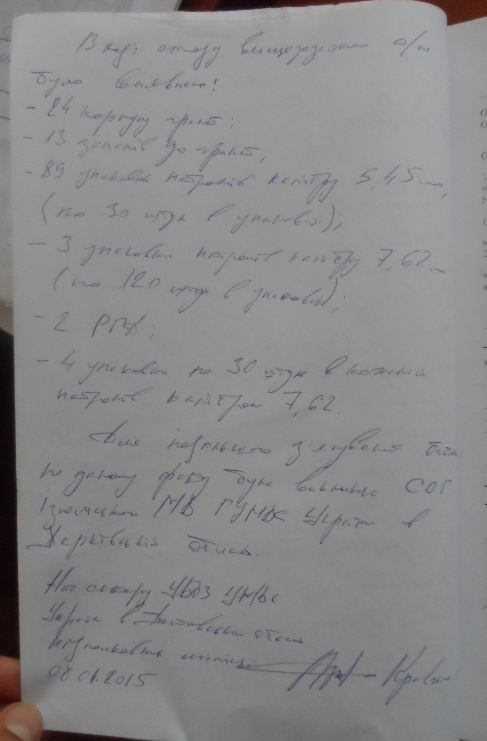 - боєприпаси, які «виявлено», зберігались з істотними порушеннями вимог чинного законодавства щодо цього (знаходились 4 доби в кабінеті слідчого не обліковані, про що є запис в реєстрі та зізнання самого слідчого, більша частина виявленого знищена без ухвали слідчого судді тощо);
