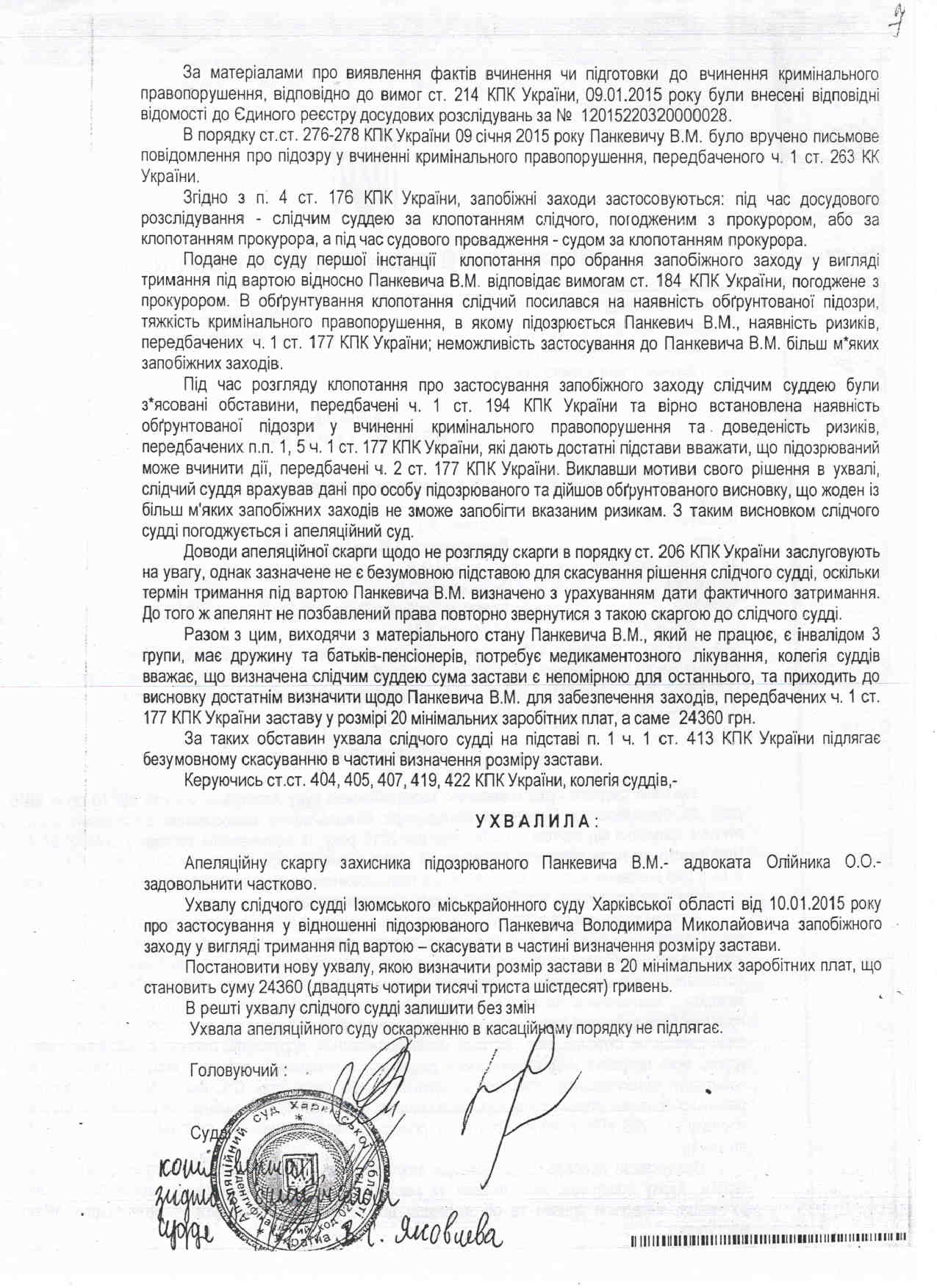 Про це свідчать матеріали судової справи за обвинуваченням Панкевича Володимира: