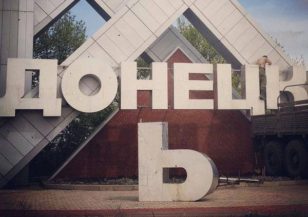 18. В Донецке осталось много бигбордов, половина оборваны, местами видна еще реклама на украинском языке, половина завешана Бигмордами лидеров ДНР.