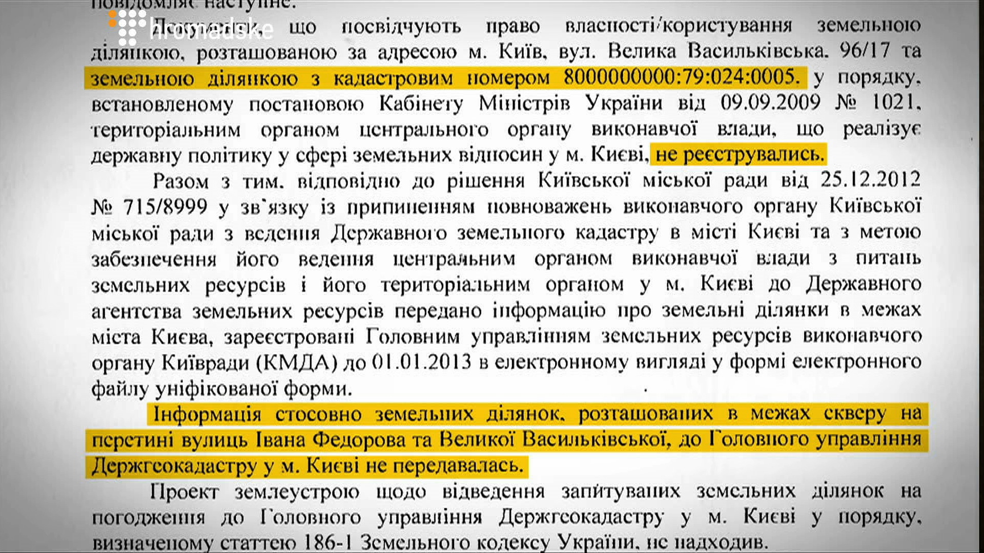Однак, схоже, юристи ресторатора банально вирішили ввести журналістів в оману. Насправді відведення землі так і не відбулося. У столичному управлінні Держгеокадастру нам повідомили, що ділянка з таким кадастровим номером, як зазначають юристи, у власність чи користування не передавалася.