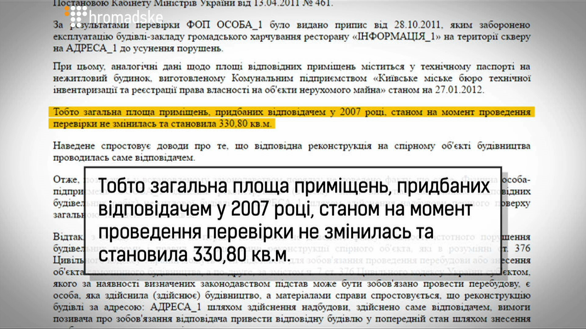 Не менш оригінальну відповідь ми отримали від юристів пана Бейліна і щодо самого приміщення, в якому розмістився ресторан.