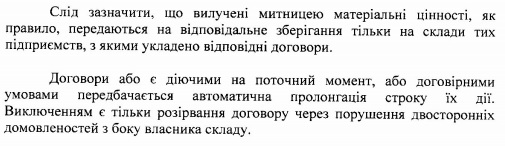Тут же уточняется, что вещи отправляются на склады, с которыми у таможни подписаны договора. По окончанию сроком действия документа предусматривается его пролонгация. Договор разрывается только в случае нарушения его условий со стороны хозяина склада.