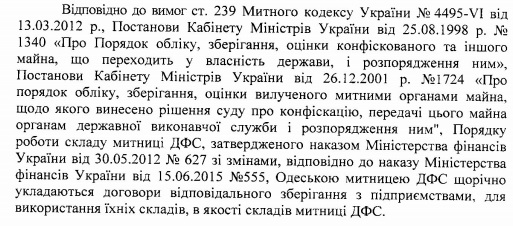 По состоянию на июнь 2016 года, сообщает Одесская таможня, ею заключены договора на ответственное хранение таможенного имущества с 10-ю предприятиями. Среди них – те, с которыми соглашение действует еще с 2015 года.