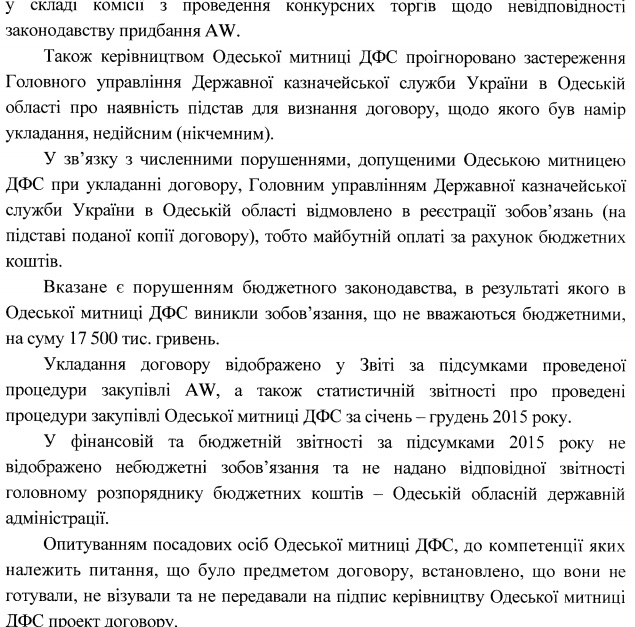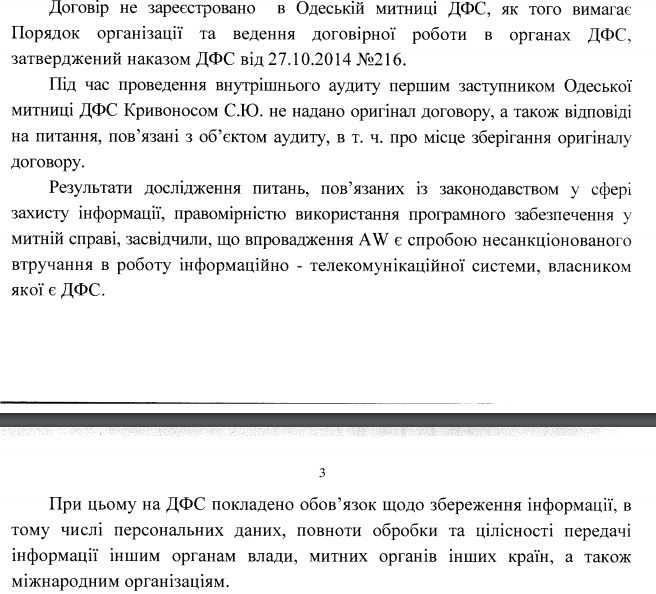 Дело в том, что внеплановый фискальный аудит Одесской таможни выяснил, что ASYCUDA была закуплена Марушевской с нарушением законодательства, без предварительного анализа и адаптации ее к существующей в ГФС.