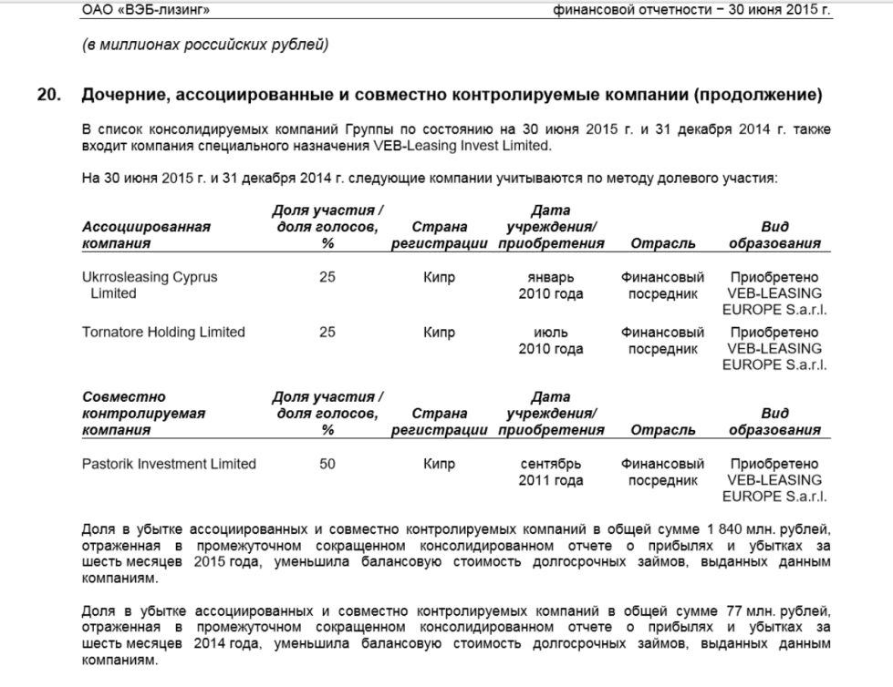 Финотчетность ОАО “ВЭБ-лизинг”, указывающая на на контроль 25/% “Укррослизинг Сайпрус Лимитед”