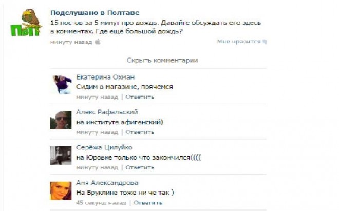 Сонячна погода обідньої пори у Полтаві різко змнилась - уперіщив сильний дощ разом з градом розміром з горохове зерня.