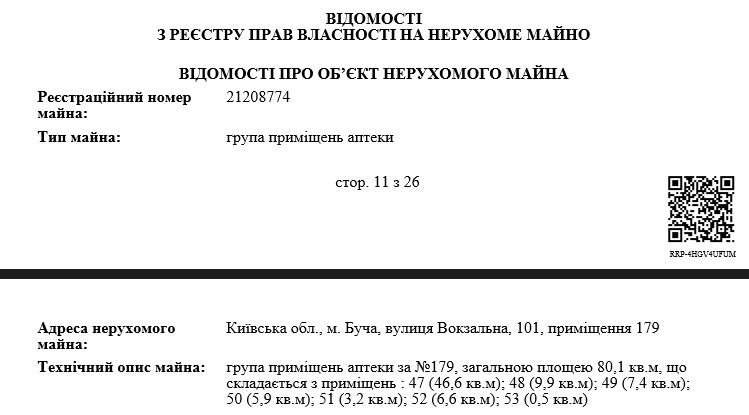 Кроме этого, супруга мэра Бучи является собственницей земель, офисов и сетей аптек. Ее аптеки находятся на ул. Вокзальной, а их общая площадь составляет 80,1 кв. м.