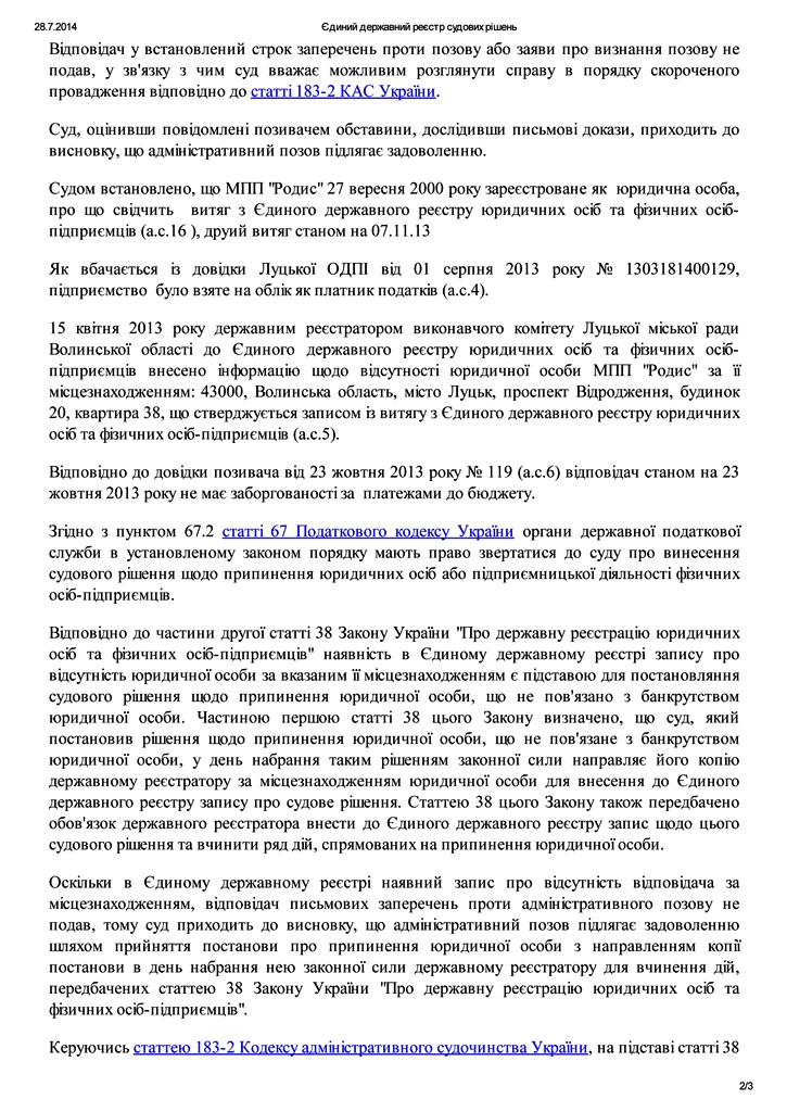 Рішення суду у справі МПП «Родис» (збільшість натисканням мишки)