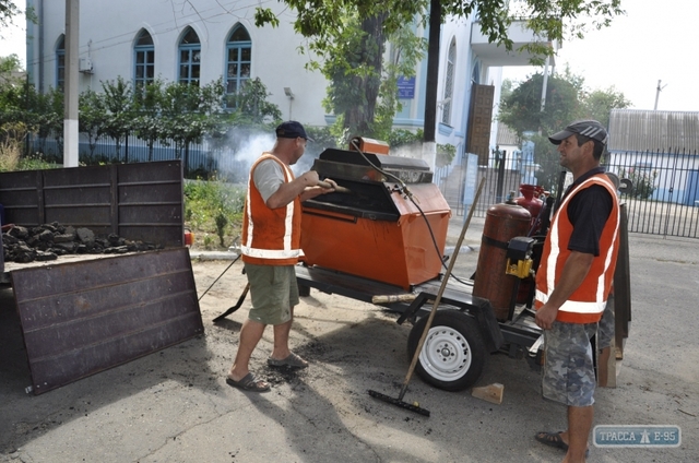 Фактически установка представляет собой мини-асфальтовый завод: старый асфальт разогревают с помощью сжиженного газа, добавляют битумную эмульсию, укладывают в подготовленные ямы и трамбуют виброплитой.