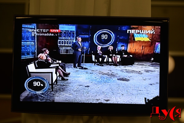 Разве что отсутствием Савика большую часть времени в студии, и составом гостей. Как-то необычно было не увидеть в креслах ни единого представителя Партии регионов, а одних только отставных чиновников и лица новой власти. Ах-да, был еще глава пресс-службы УПЦ МП протоирей Георгий Коваленко и заклятый друг Шустера тележурналист Евгений Киселев.