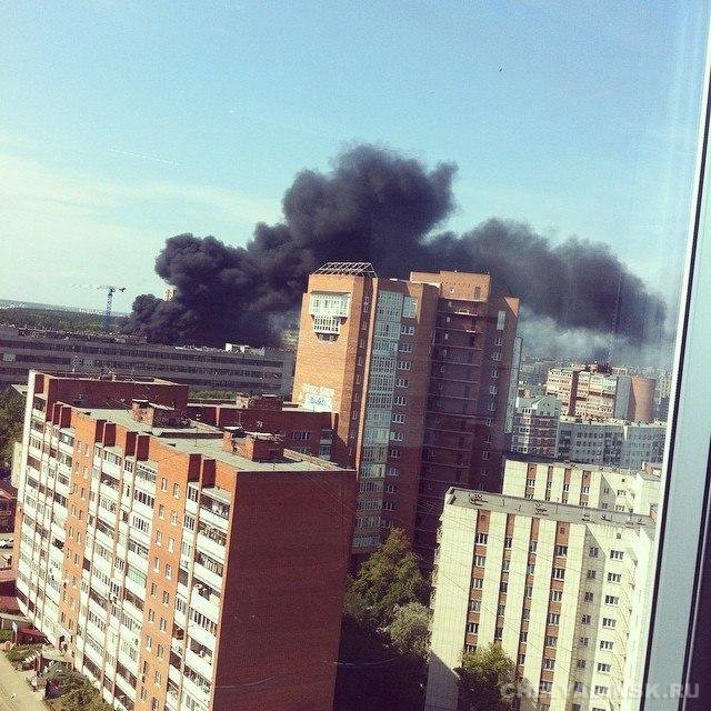 Серьезный пожар начался только что в центре Челябинска в районе ЮУрГУ рядом с территорией бывшего радиозавода «Полет».