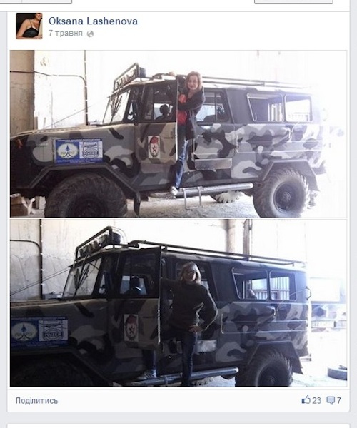 где Лащёнова вместе с Ингой Шумаковой, сообщавшей террористам сведения о перелётах наших военных бортов, позируют на фоне джипа террористов, в полной мере освещает подлинную причину столь свободного её перемещения по оккупированному русскими боевиками Луганску.