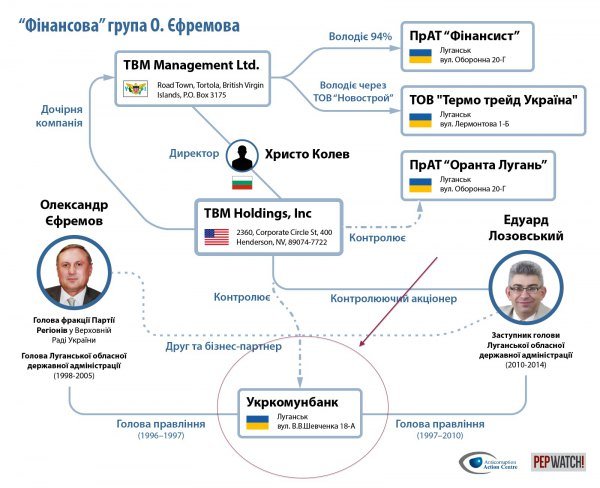 За время безраздельного властвования Ефремова на Луганщине "Укркоммунбанк" прославился непрекращающимися рейдерскими атаками на промышленные объекты и бизнес-структуры, широко разветвленной сетью пунктов обналички и массовым переводом на обслуживание практически всех бюджетников области в приказном порядке. Последний факт едва не спровоцировал в Луганске бунт, ибо для того, чтобы получить аванс или зарплату в единственном банкомате "Укркоммунбанка", и без того измождённым бюджетникам приходилось стоять в очереди по нескольку часов.