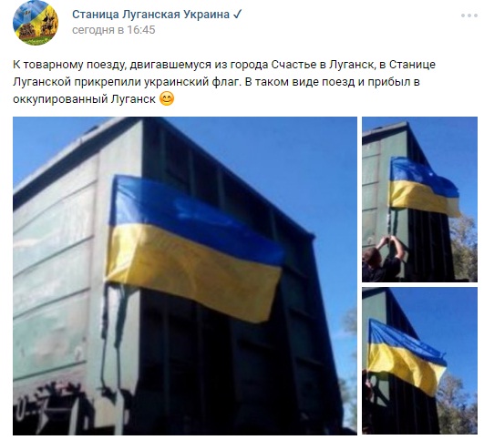 "Станично-Луганский район. Ура! Сегодня флаг Украины въехал в наш Луганск. Слава нашим боевым офицерам!", - сказано в сообщениях проукраинских групп ВКонтакте.