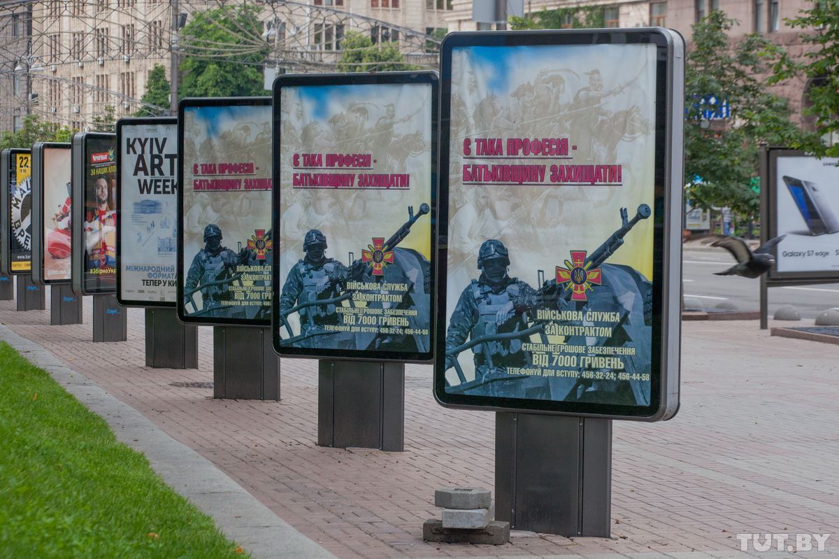 Эта реклама призывает служить по контракту в армии Украины. Солдат-контрактник получает зарплату, эквивалентную 300 долларам США, что является не самой плохой для Киева и весьма хорошей для провинции.