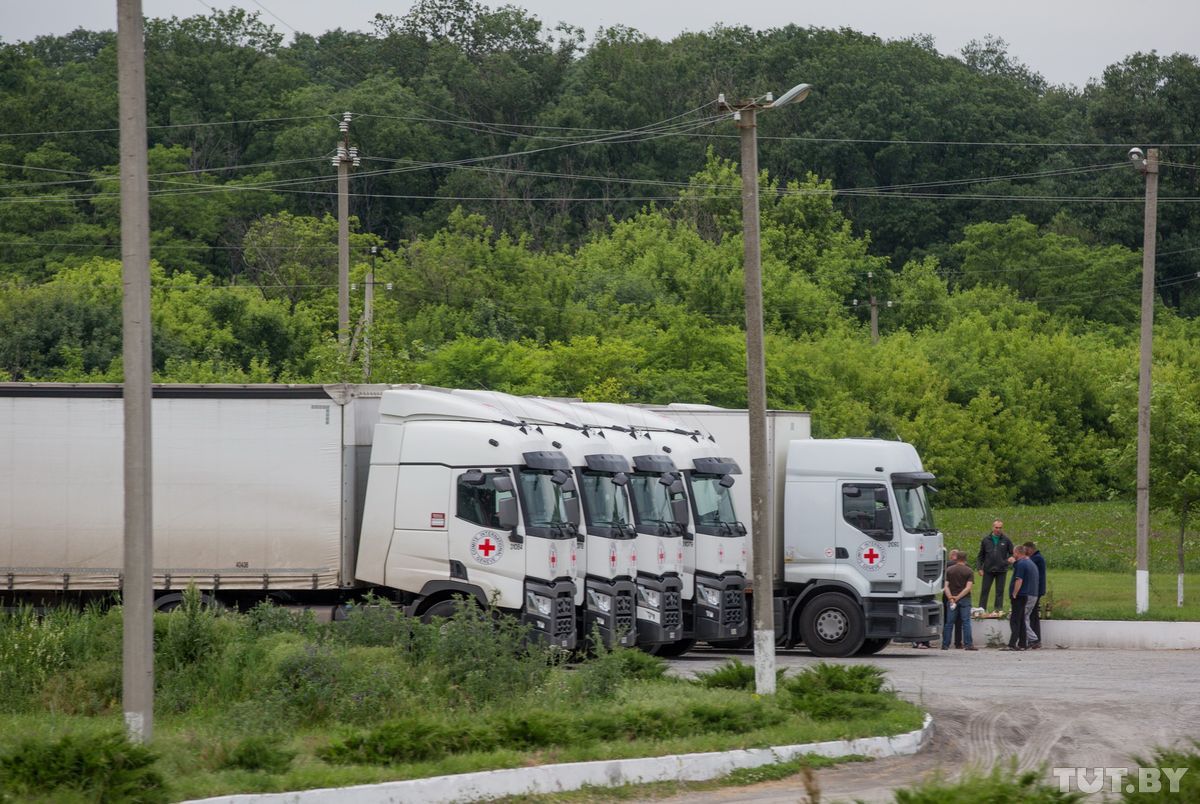 На подъезде к Днепру, на одной из заправок, — колонна из шести фур Красного Креста с госномерами Швейцарии.