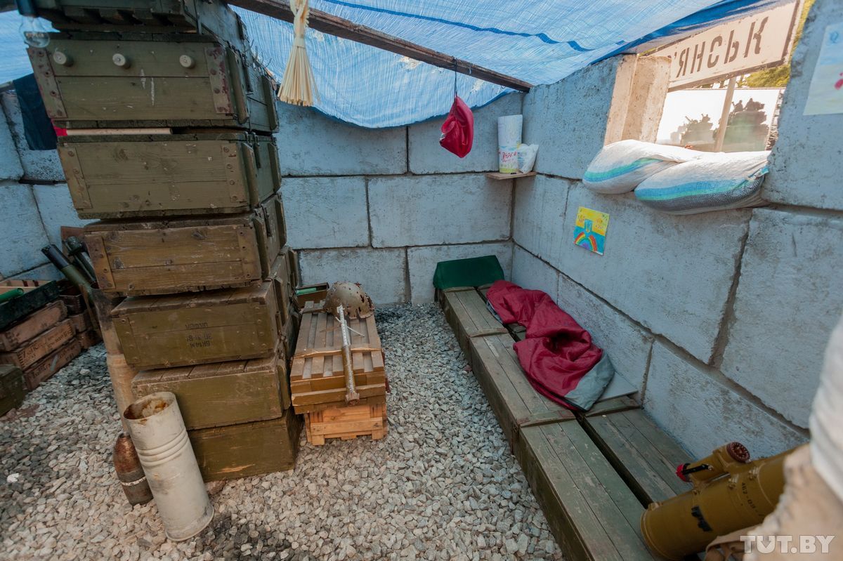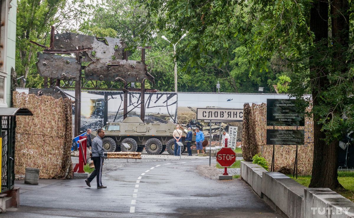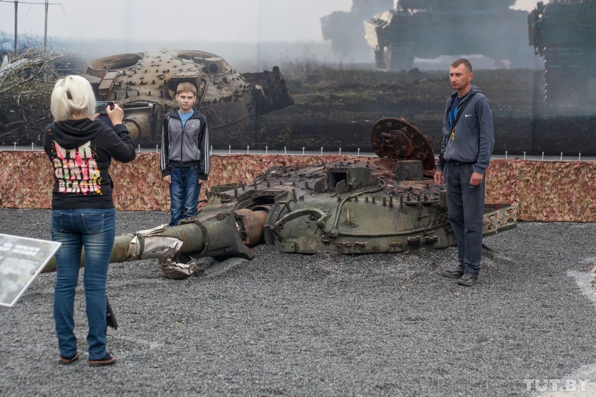 Как и в любом музее, среди экспонатов ходят посетители, с интересом разглядывая макет блокпоста, башню от подбитого танка, продырявленные осколками дорожные указатели населенных пунктов, торчащие из разлитого бетона стреляные гильзы.