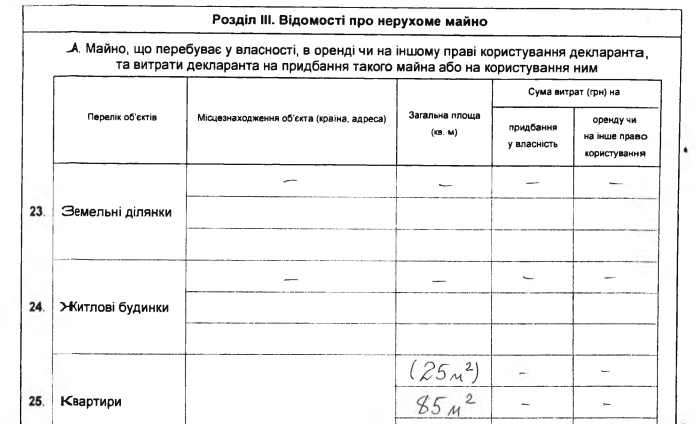 Также Черный задекларировал 2 квартиры - площадями 25 м кв. и 85 м кв.