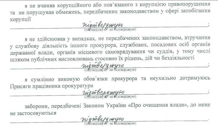 Также на сайте Генпрокуратуры Украины размещена анкета добродетели прокурора.