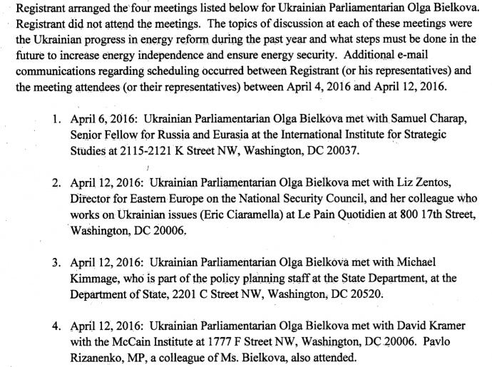 Как указано в документе, на заказ Пинчука для Бельковой лоббисты вели переговоры с 76 лицами, четыре из которых согласились с ней встретиться.