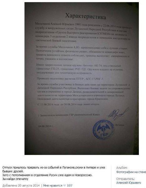 "Многие помнят эту руссо-фашистскую мразь, давно не светился, писали что подох, ан нет. Более того, он опять на Луганщине, на днях принимал участие в нападении на роту добровольческого батальона "Айдар" возле поселка Счастье уже после объявления перемирия, в ходе которого погибло 11 бойцов.
