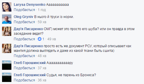У мережі набирає популярність фото одного з суддів Чугуївського міського суду Харківської області в "норковій мантії". Відповідний знімок опублікував на своїй сторінці в Facebook військовий прокурор Генеральної прокуратури Ігор Німченко, передають Патріоти України.