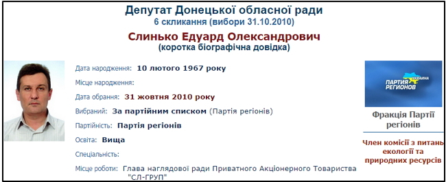 На той момент, згідно з державним реєстром, МГК через ланцюжок компаній належала депутатові Донецької облради Едуарду Слиньку. Власне, МГК належало компанії "Газінвест Груп", нею володіла "СЛ Груп", якою напряму володів Слинько.