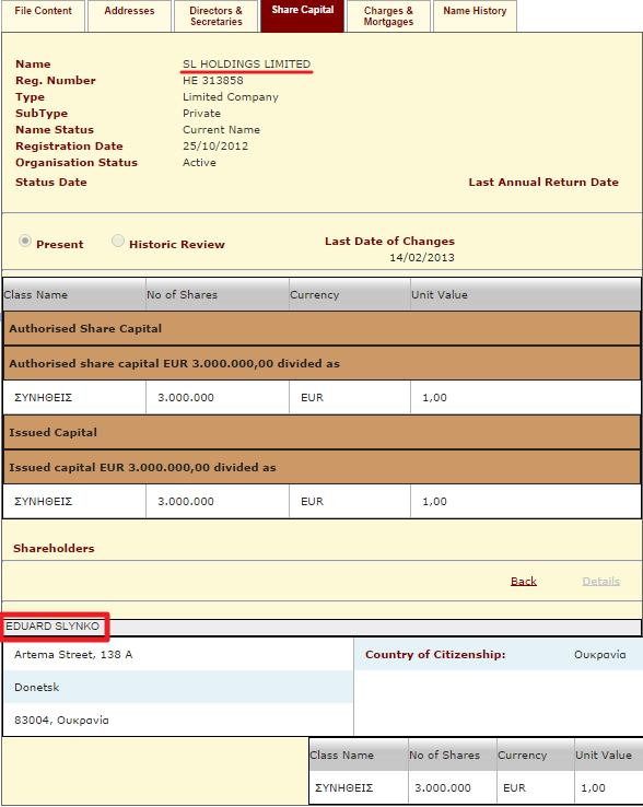 Щоб дізнатися, хто стоїть за новим власником, який зареєстрований в офшорній юрисдикції, INSIDER отримав виписку з кіпрського реєстру на цю компанію.