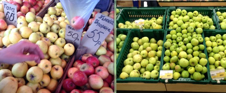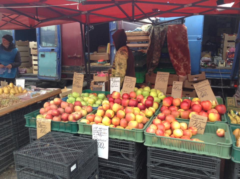 Яблоки в Севастополе по большей части дешевле. 55 рублей против 89 рублей. Впрочем, это не отменяет того факта, что через два прилавка на Чайке такие же семеренко за 100 рублей. Продавщица говорит — Краснодар. Так ли это — неизвестно.