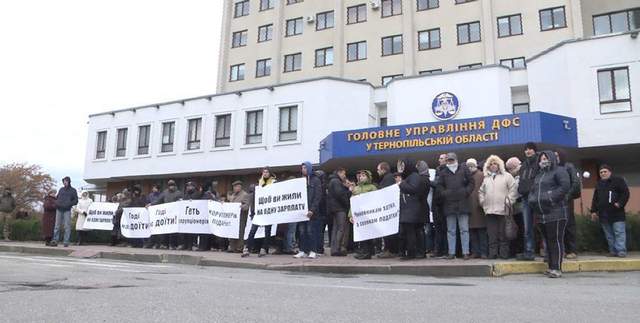 Более стапятидесяти людей пришли пикетировать здание Главного управления ДФС в Тернопольской области.