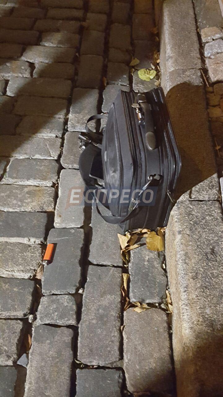 Чоловік одразу викликав поліцейських. Невдовзі один з патрулів побачив чоловіка на скутері, який підходив під орієнтування.Тікаючи від копів скутерист врізався у сферу, що загорожує рух і 70 метрів котився покотом по вул. Інститутській вниз до Хрещатика.