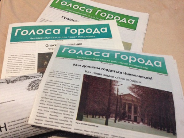 Еще год назад с помощью волонтеров школьники Николаевки решили издавать газету «Голоса города». Писали, верстали, печатали и раздавали тысячу экземпляров ежемесячно. Взрослые с интересом читали, других изданий там нет.