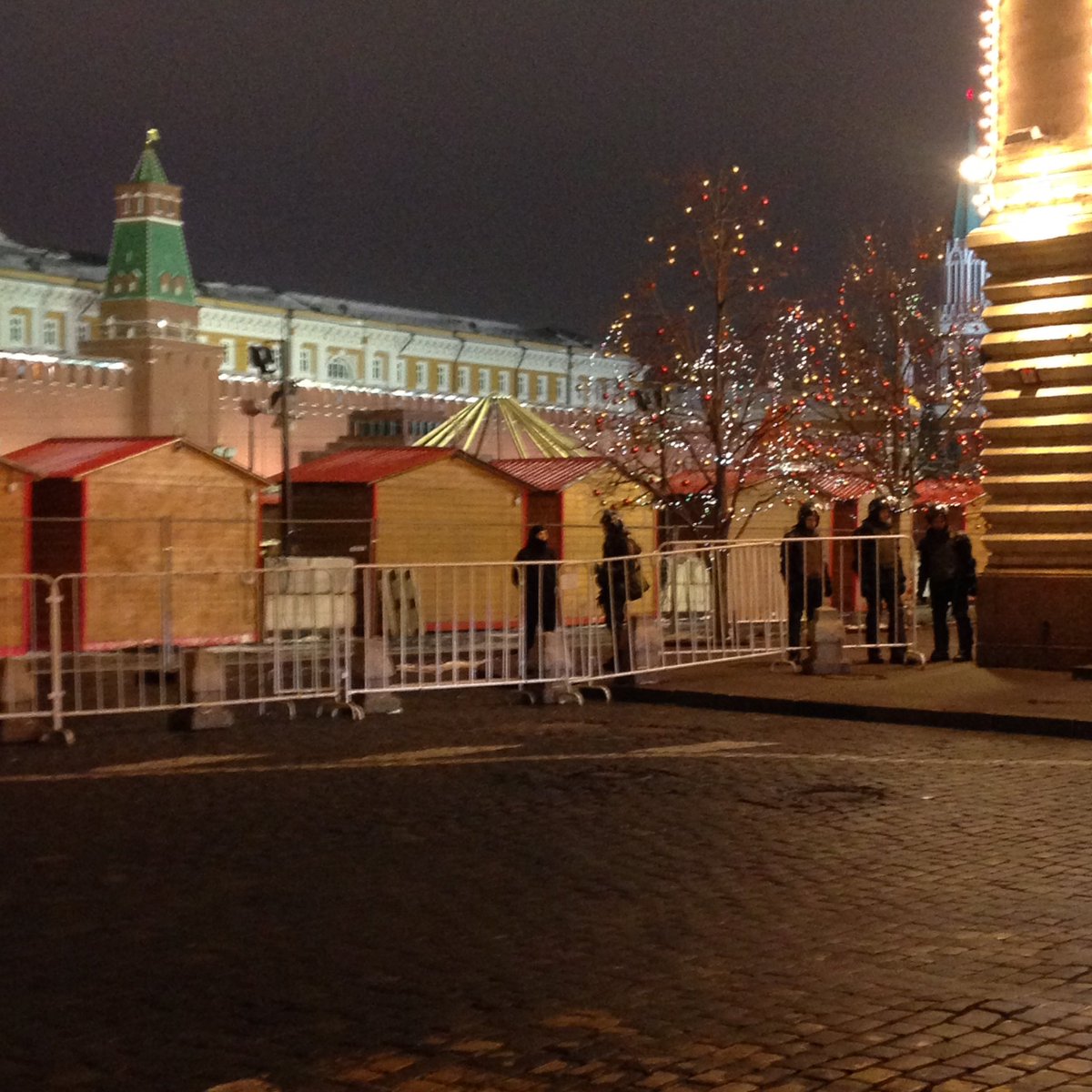 Вечером, 17 ноября, в Москве российские силовики начали выставлять ограждения и очищать от москвичей и туристов Красную площадь. Военные перекрыли все проходи на Красную площадь и никого не впускают.