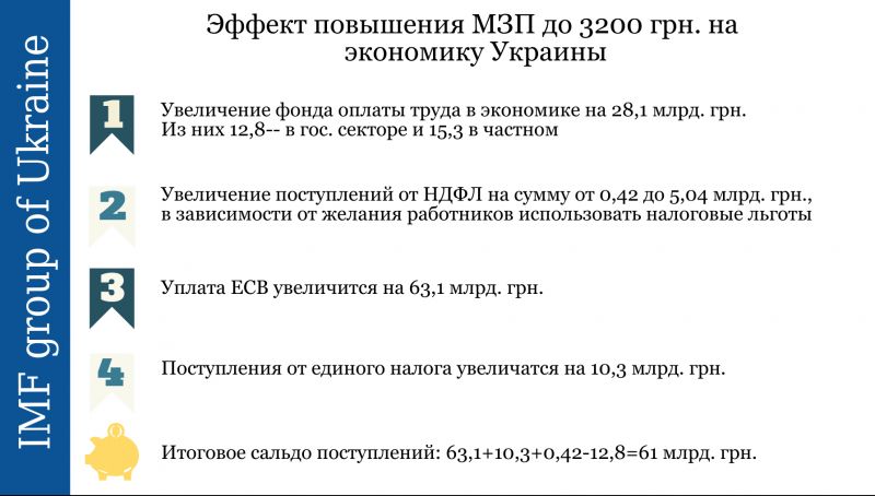 Спустя неделю появился "Официальный пресс-релиз IMF Group Ukraine о последствиях повышения минимальной зарплаты до 3200 грн. в 2017 году". Экономисты сделали вывод, что повышение минималки не рождает дополнительных ни инфляционных рисков ни рисков увеличения дефицита бюджета, а напротив, может иметь хоть и не значительное, но положительное влияние на увеличение внутреннего спроса. Утерли нос "зрадофилам", и, как следствие, "переможний" прогноз активно разнесли по соцсетям.