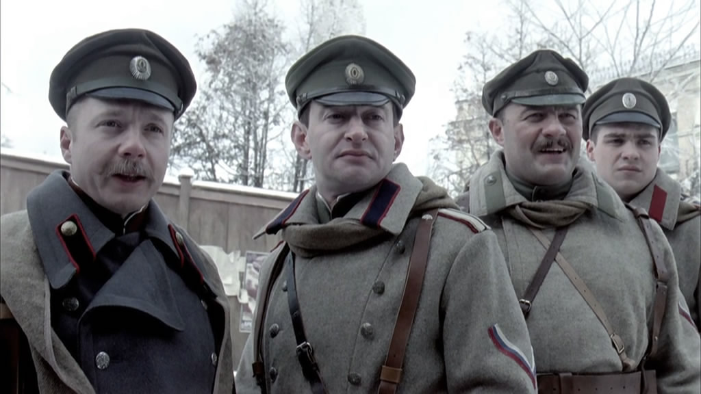 Один раз, правда, звучит марш "Прощание славянки", но, во-первых, в ироничном ключе, а, во-вторых, если считать это пропагандой, то тогда уже, скорее, царского режима, ибо написан он был в 1912 году штаб-трубачом 7-го запасного кавалерийского полка, стоявшего в Тамбове.