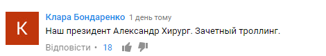 "Наш президент Александр Хирург. Зачетный троллинг", - подчеркнула Клара Бондаренко.